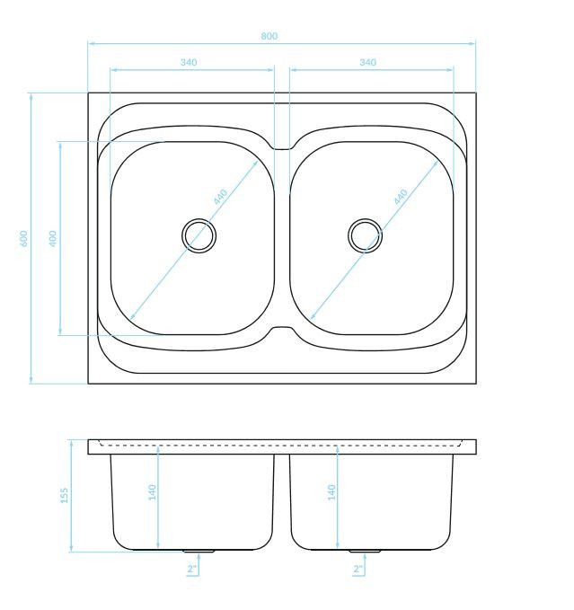 LAVEO LON 60 2M teletetős kétmedencés inox mosogató szifonnal K. – SK2_020T