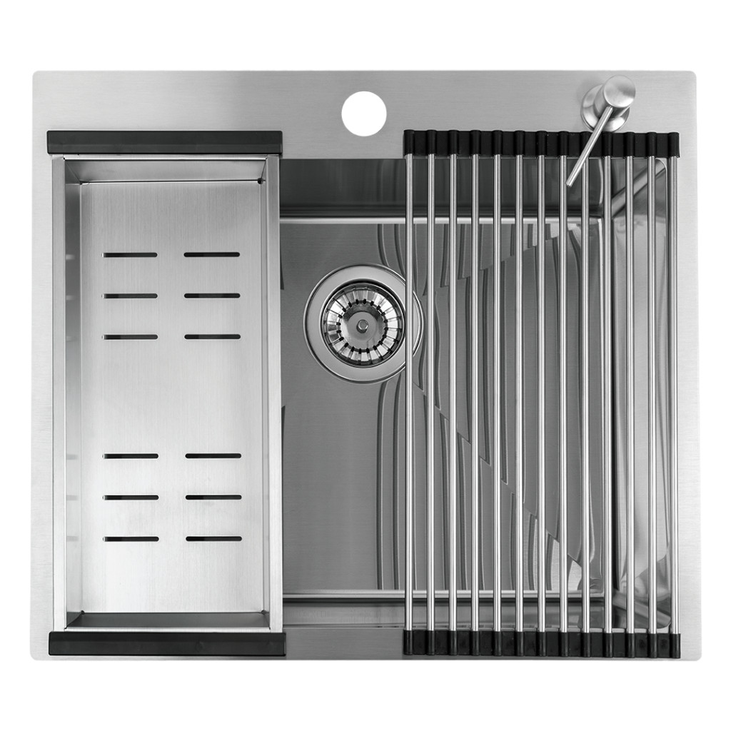 LAVEO MALAWI inox beépíthető mosogató szifonnal, rollmat csepegtetővel, gyümölcsmosóval, mos.szer adagolóval, 50x58x20 cm – SLMA_010D