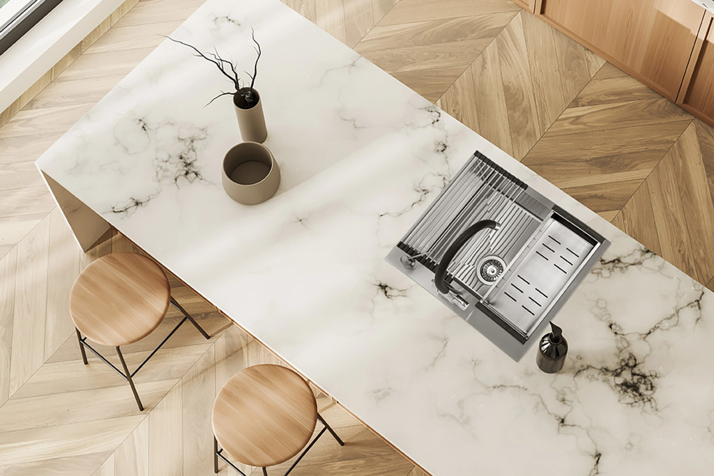 Kerülje el a felesleges ide-oda lépkedést, és javítson a munkamenetén. Mi éppen erre gondoltunk, amikor optimalizáltuk mosogatóját. Hová kell tenni a szivacsot? Csak dobja bele a tálkába, amely a mosogató sarkában van, mint egy kirakós darabja. A multifunkciós rekeszt választaná, amely a mosogató teljes szélességén végignyúlik? Mind így tennénk! Egyszerűen helyezze a mosogatóba.
