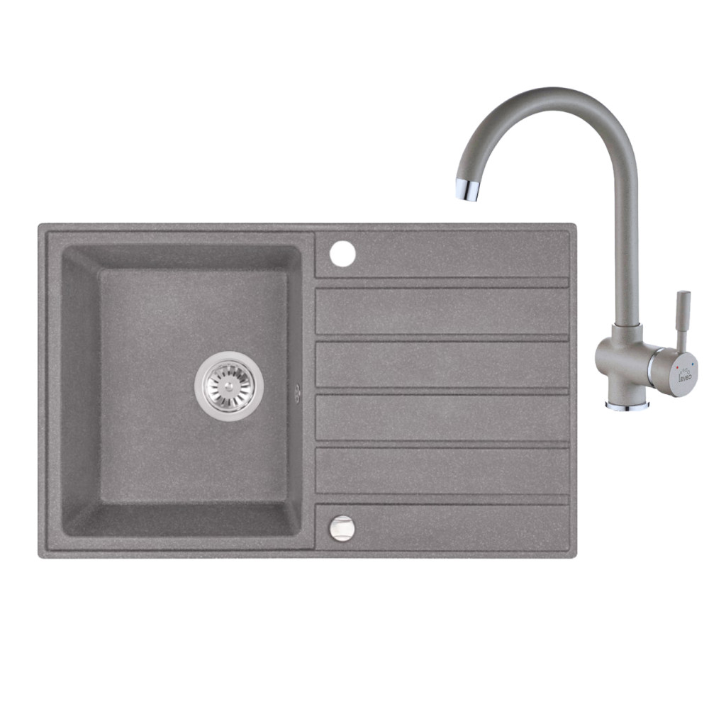 Laveo MARGARITA szürke szett álló csappal, automata dugókiemelős, helytakarékos szifonnal – SRMA_511T
