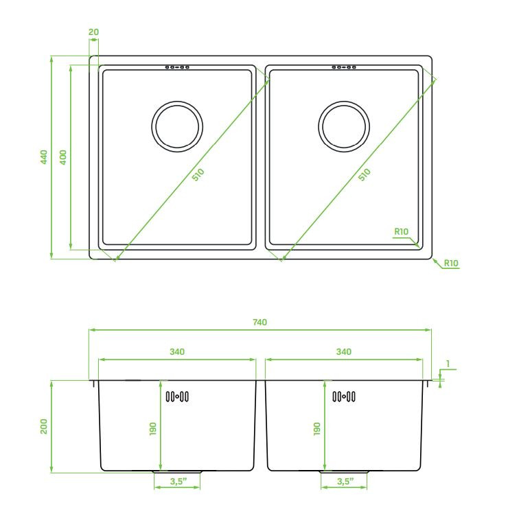 A Marmara kétmedencés rozsdamentes acél mosogató tökéletes megoldás a modern konyhákba, ötvözve a funkcionalitást az eleganciával. 304-es rozsdamentes acélból készült, így nemcsak esztétikus megjelenést kölcsönöz, hanem könnyen tisztítható is. A rozsdamentes acél magas higiéniai tulajdonságokkal rendelkező anyag, ellenáll a hősokknak, a karcolásoknak, az elszíneződésnek és a 250°C-ig terjedő magas hőmérsékletnek. Továbbá a mosogatót széleskörű használatra tervezték. Teljesen hangszigetelt, így használat közben nem hallható zaj.