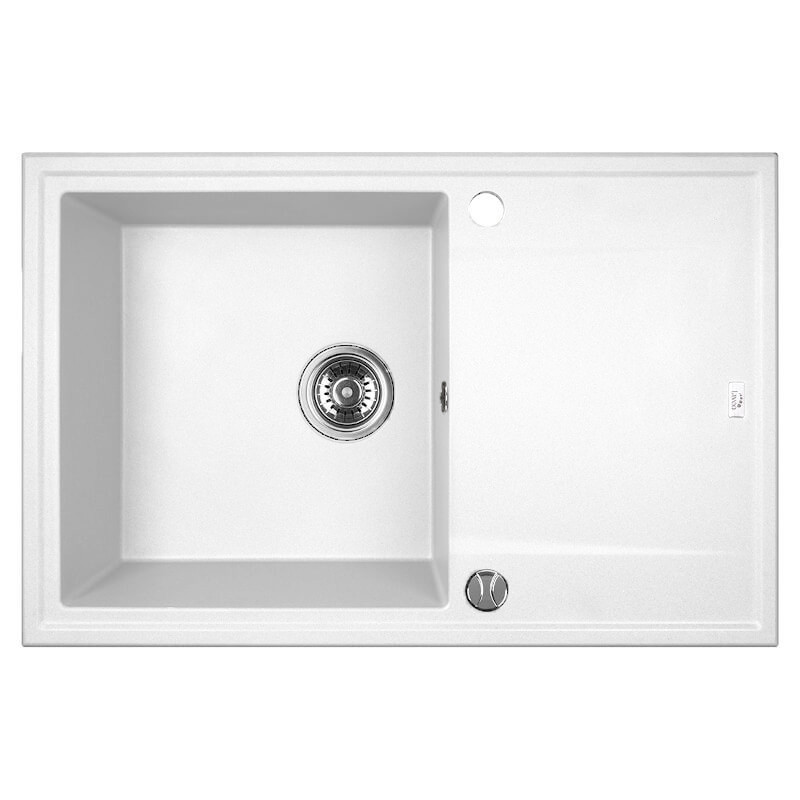 Laveo MEGALO csepptálcás fehér mosogató dugókiemelős helytakarékos szifonnal – SRE_611T