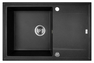 Laveo MEGALO csepptálcás szemcsés fekete mosogató dugókiemelős helytakarékos szifonnal