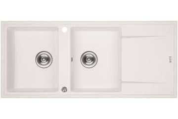 Laveo MEGALO kétmedence csepptálcás fehér mosogató dugókiemelős helytakarékos szifonnal – SRE_621T
