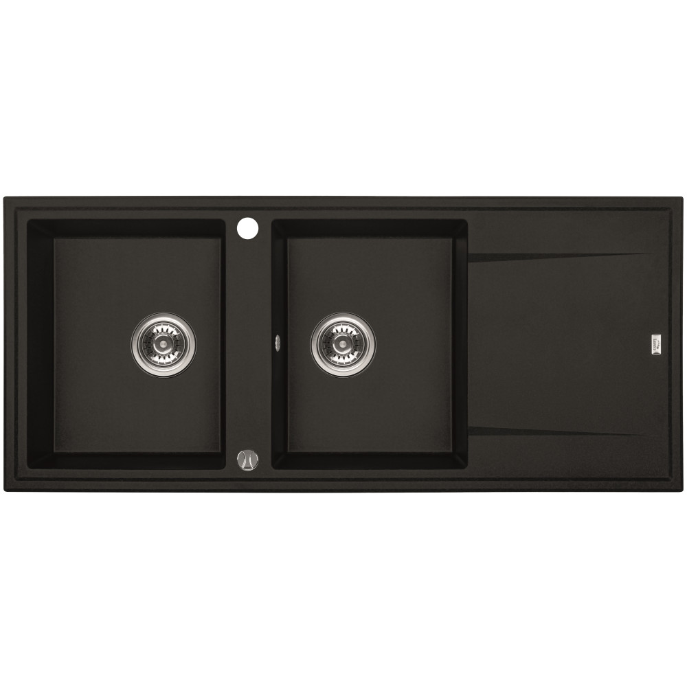 Laveo MEGALO kétmedence csepptálcás matt fekete mosogató dugókiemelős, helytakarékos szifonnal – SRE_721B