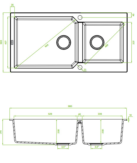 A Milos mosogató praktikus automata dugóval rendelkezik a könnyű leeresztés érdekében, valamint egy helytakarékos szifonnal, amely értékes helyet takarít meg a mosogató alatt, lehetővé téve a jobb tárolást. Megfordítható beépítésének köszönhetően a mosogató könnyen alkalmazkodik a különféle konyhai elrendezésekhez, 100 cm széles szekrényekbe is befér.