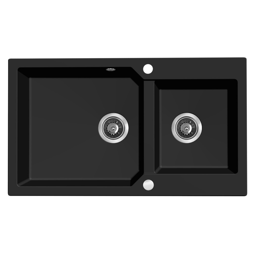 Laveo MILOS 2M 90 kétmedencés matt fekete gránit mosogató helytakarékos dugókiemelős szifonnal – SPM_B208