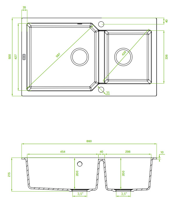 A gránitból készült, monokróm fekete Milos mosogató nemcsak színmélységet, hanem kivételes tartósságot is kínál. Felülete karc-, folt- és hőálló, így tartós esztétikai megjelenést biztosít. A mélyfekete szín a konyha központi elemévé teszi a mosogatót, modern, minimalista stílust kölcsönözve neki.