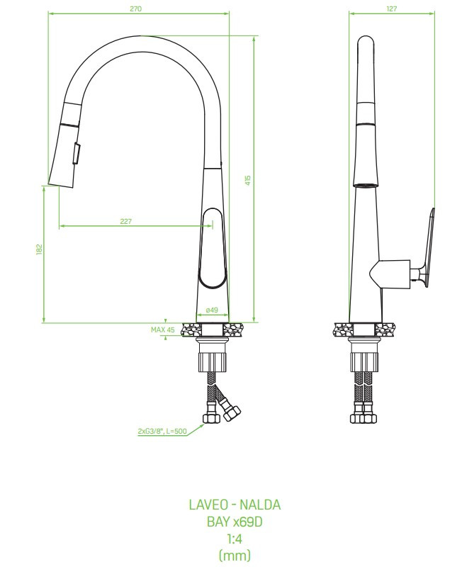 A Nalda csaptelep számos előnnyel rendelkezik, speciális feladatokra, a két vízsugártól (eső és állandó) a „hidegindításos” rendszerig. A magas csaptelep (41,5 cm) hasznos nagy edények és sütőlapok mosogatásához. A kihúzható kifolyó lehetővé teszi az edények mosogatását anélkül, hogy a mosogatóba kellene helyezni őket. A sorozat egyik fő előnye a „hidegindításos” funkcióval ellátott kerámia betét. Minden alkalommal, amikor megnyitja a csapot, hideg vizet kap, amelynek hőmérséklete csak a kar állításával növelhető. Ez a rendszer megakadályozza a forrázást vagy a meleg víz szükségtelen elvesztését. A fekete Nalda konyhai csaptelep teljes funkcionalitást kínál az igényes konyhai felhasználók számára. Az érdekes dizájn és a fekete felület fokozza a mosogatófelületet.