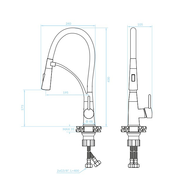 LAVEO OLOR rugalmas tömlős zuhanyváltós grafit csaptelep – BKR_978D