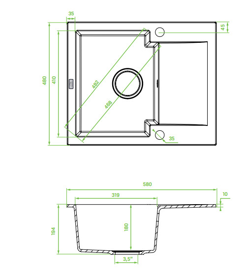 Laveo PICO 45S mini fekete szemcsés gránit mosogató helytakarékos szifonnal – SRH_713Y