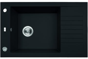 Laveo PIONIER minicsepptálcás matt fekete mosogató automata dugókiemelős, helytakarékos szifonnal
