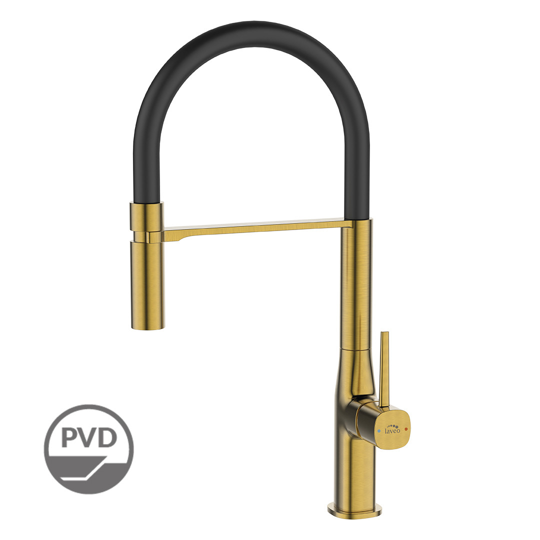 Laveo POLA álló csaptelep rualmas kiömlővel, szálcsiszolt arany/fekete – BAP_G78B