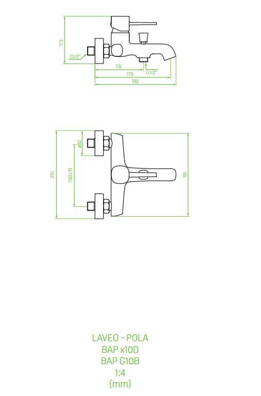 LAVEO POLA falra szerelhető kádcsap zuhanyszett nélkül, fekete – BAP_710D