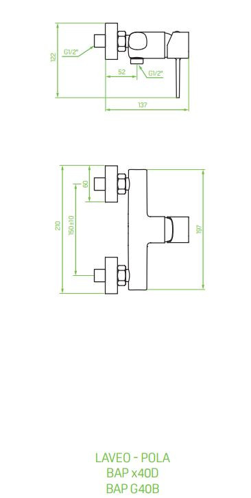LAVEO POLA falra szerelhető zuhanycsap zuhanyszett nélkül, arany – BAP_G40D