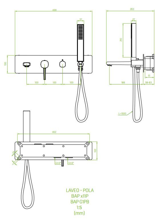 A Pola falsík alatti kádcsaptelep a piaci igényekre adott válasz, melyek nemcsak a mindennapi használatra, hanem a beszerelés során is praktikus modelleket igényelnek. A kifolyó, a kar, a funkciókapcsoló és a kézibeszélő soros elrendezése modern megjelenést kölcsönöz a csaptelepnek, és szakít a kerek, falsík alatti modellek mintájával. A krómozott felület ideális a klasszikus stílusú fürdőszobákba. A hosszúkás fedél az azonos sorozatú mosdócsaptelepre emlékeztet, és egységes dizájnt biztosít.