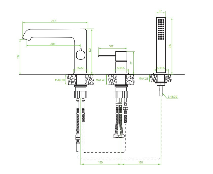 Mivel a zuhanycső a kád alatt rejtett, a csaptelep környéke rendezettebb és esztétikusabb.