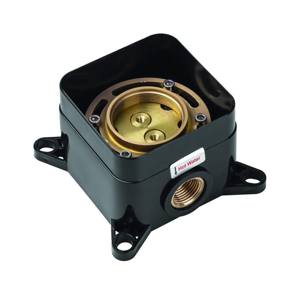 A csaptelep rejtett dobozzal van felszerelve a könnyű telepítés érdekében.