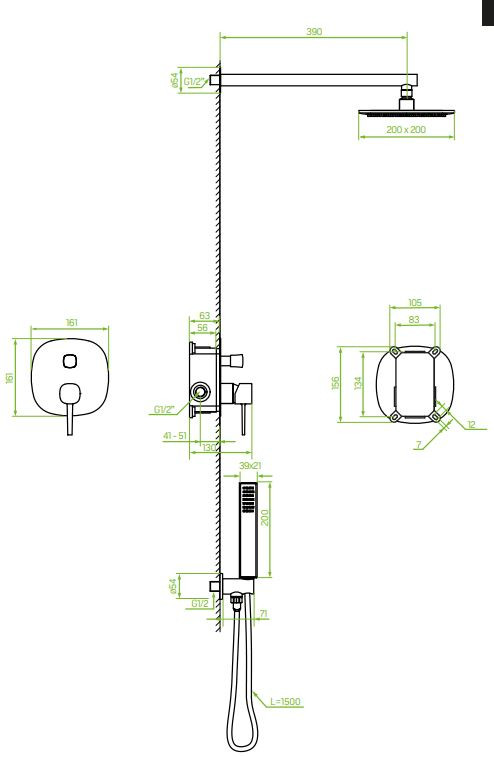 LAVEO POLA zuhanyszett rejtett beépítésre, fekete – BAP_701P