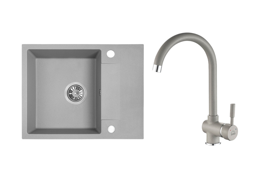 Laveo RAB MINI szürke szett álló csappal, helytakarékos szifonnal – SRF_513YL