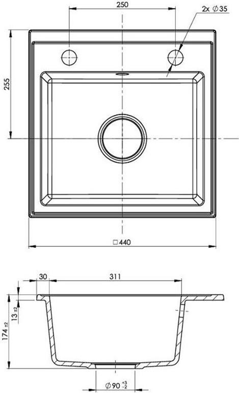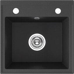 Laveo RINA egymedencés szemcsés fekete mosogató csaplyukkal, automata dugókiemelős, helytakarékos szifonnal – SRP_710T
