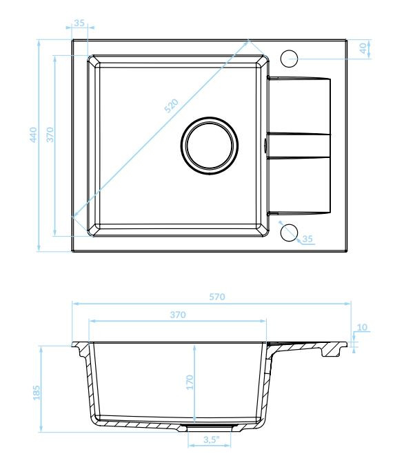 Laveo SHIRE MINI csepptálcás szemcsés fekete mosogató – SRS_713Y
