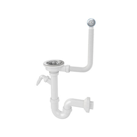 Helytakarékos szifon 3,5″ kerek túlfolyóval, mosogatógép csatlakozóval egymedencés mosogatóhoz