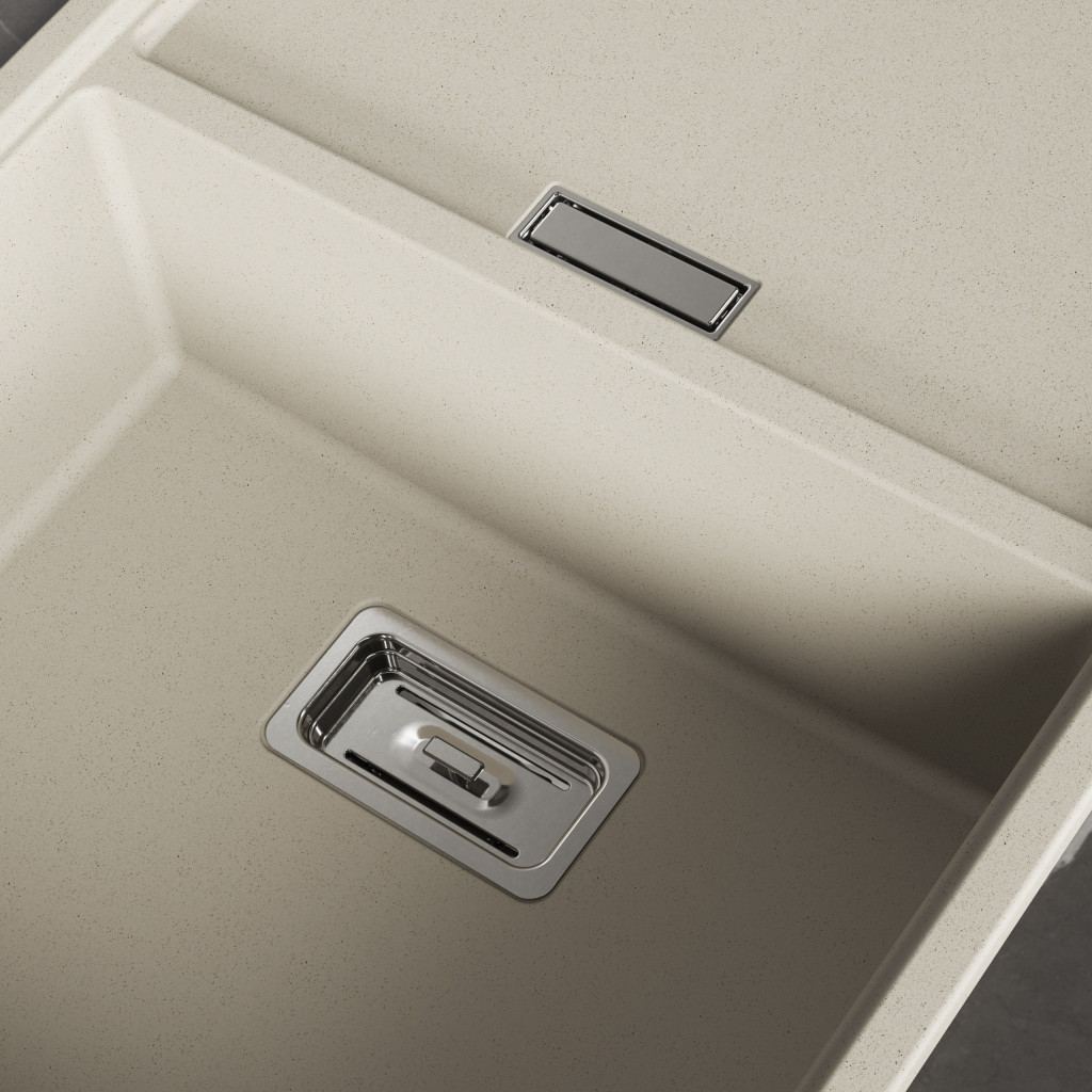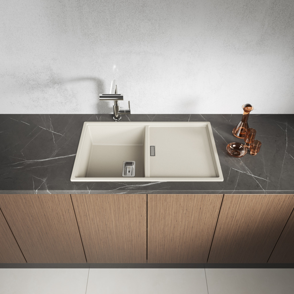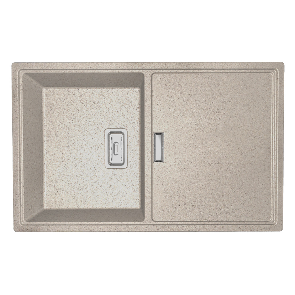 Laveo TONGA bézs csepptálcás gránit mosogató helytakarékos szifonnal – SPT_411T