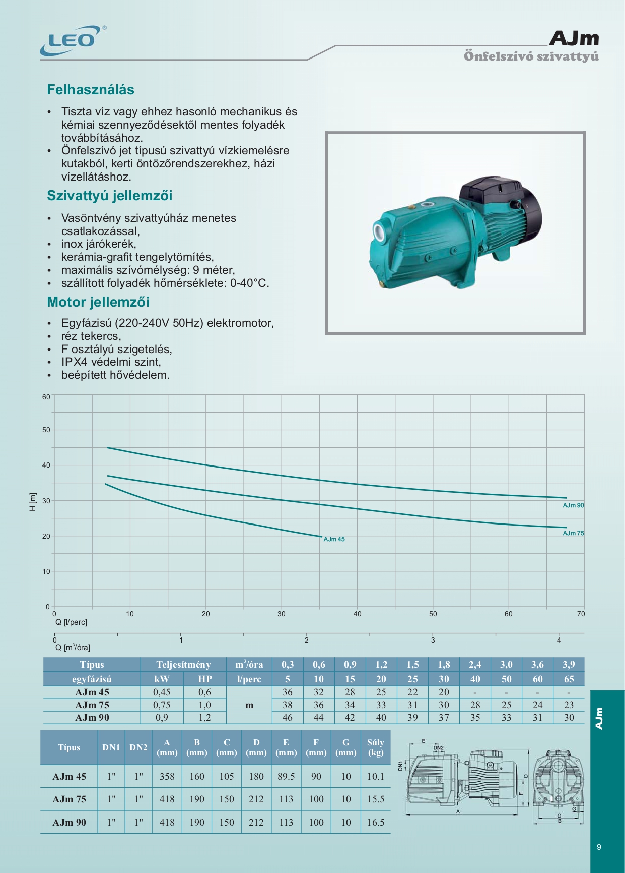 - Önfelszívó jet típusú szivattyú vízkiemelésre kutakból, kerti öntözőrendszerekhez, házi vízellátáshoz.