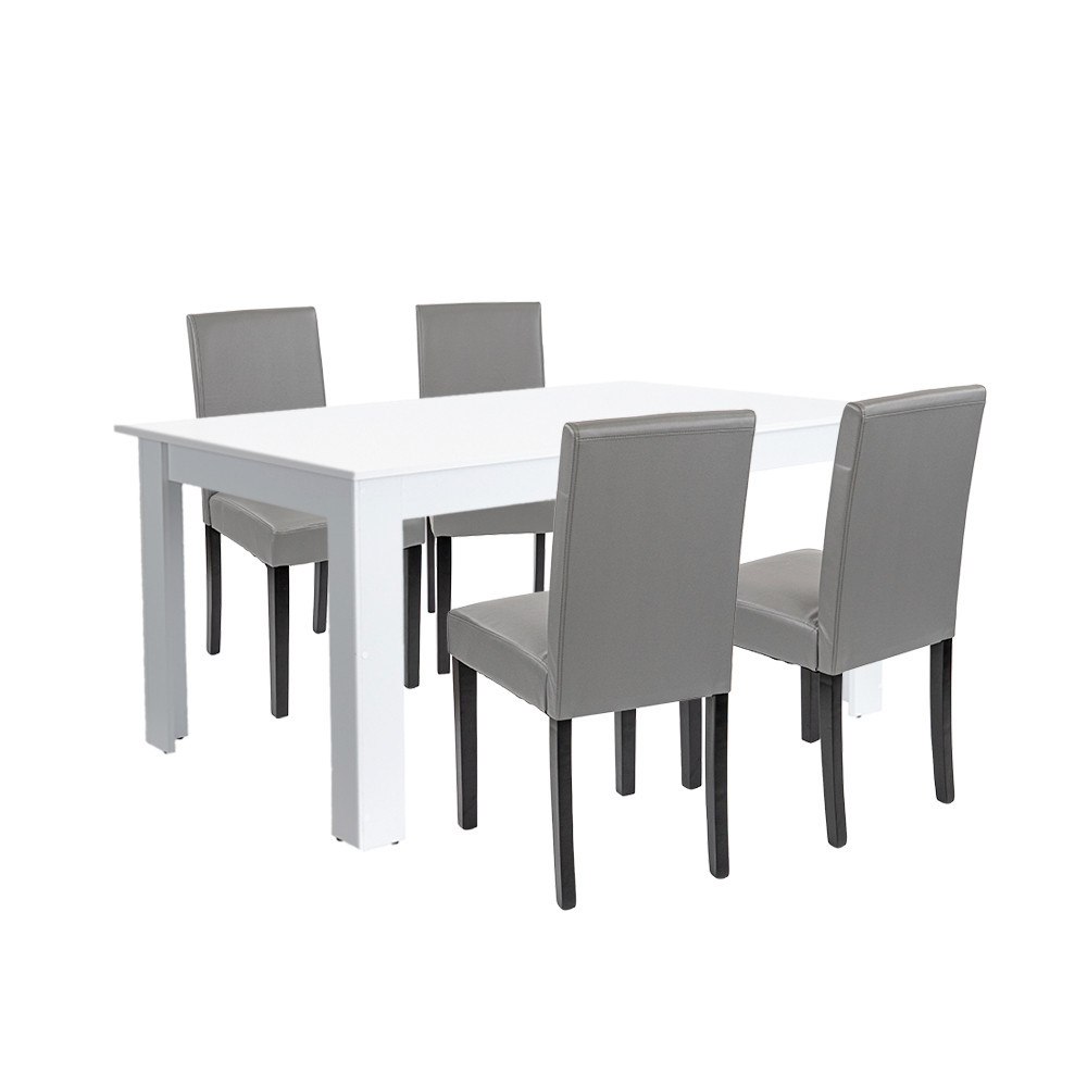 Te is unod már a billegő asztalokat és a kényelmetlen, nyikorgó székeket, amik elrontják a közös étkezések hangulatát? A mindennapi vacsorák, családi ünnepek vagy baráti összejövetelek során mindenki kényelmet és kellemes légkört keres — de egy instabil asztal vagy nehezen tisztítható felületek csak bosszúságot okoznak. Főleg, ha kisgyermekekkel vagy gyakori vendégekkel élsz együtt, ez folyamatos stressz forrása lehet. A Leziter Leon 4+1 étkezőgarnitúra fehér -szürke színben ezt a problémát végleg megoldja: praktikus méretű, mégis elegáns szett, amely négy kényelmes széket és egy stabil, praktikus étkezőasztalt kínál — tökéletes választás otthonra, irodába vagy vendéglátóhelyekre egyaránt.