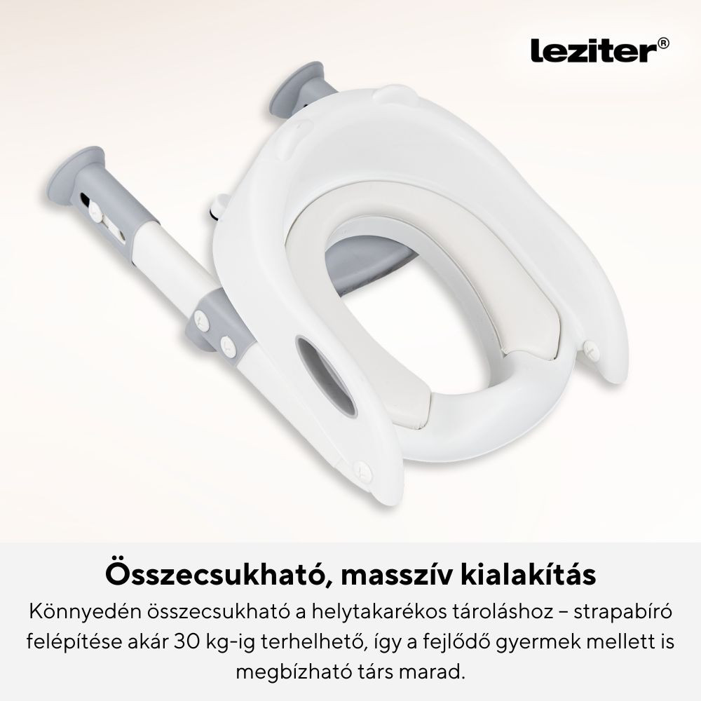 A szobatisztaság elsajátítása kisgyermekkorban fontos mérföldkő. Sok háztartásban azonban nincs lehetőség külön gyermek WC és mosdó kialakítására, így a hagyományos felnőtt WC-t szükséges átalakítani olyan módon, hogy azt egy kisgyermek is képes legyen használni, először segítséggel, majd önállóan. Ebben segít a lépcsős wc szűkítő, amely kiváló megoldás, most szürke színben.