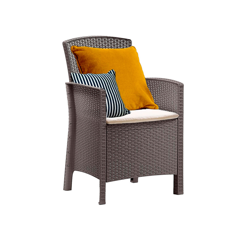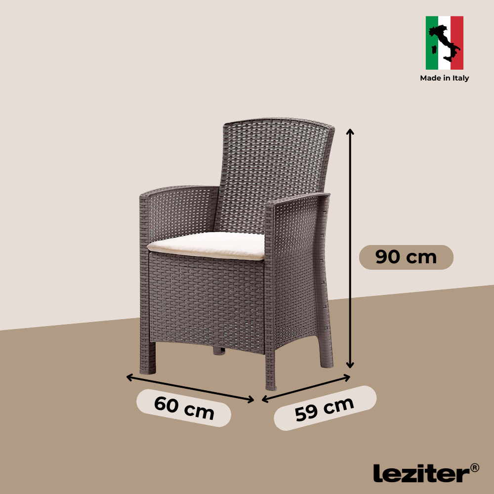 A Lima műrattan karfás szék (56x60x90 cm) minden, amire szükséged van egy stílusos és kényelmes kültéri pihenéshez: