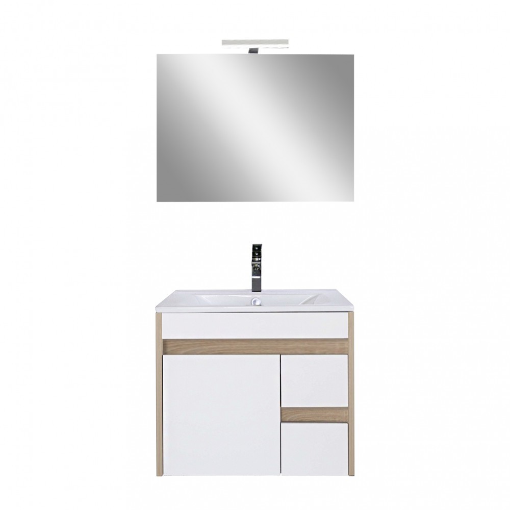 A fürdőszoba bútor tágas kialakítással rendelkezik ahol kényelmesen elférnek a fürdőszobai pipere eszközök. Kompakt kialakítása miatt kisebb fürdőszobák berendezésére is alkalmas, például panel lakásokban. A termék magas minőségű bútorlapból készül és színben passzoló élzárókkal van ellátva. A fürdőszoba bútor felfüggesztett kivitelben kapható.