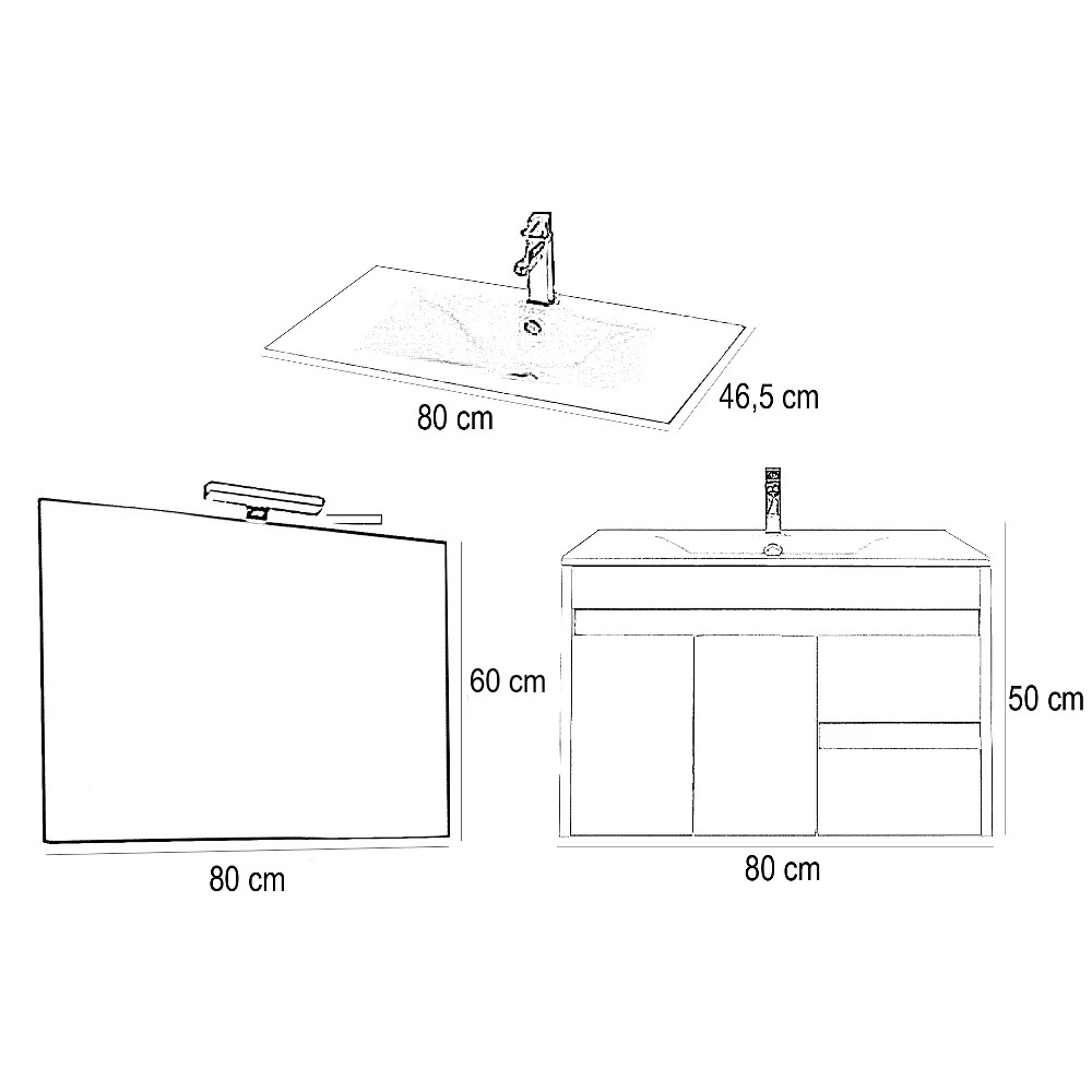 A fürdőszoba bútor tágas kialakítással rendelkezik ahol kényelmesen elférnek a fürdőszobai pipere eszközök. Kompakt kialakítása miatt kisebb fürdőszobák berendezésére is alkalmas, például panel lakásokban. A termék magas minőségű bútorlapból készül és színben passzoló élzárókkal van ellátva. A fürdőszoba bútor felfüggesztett kivitelben kapható.