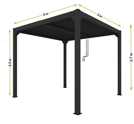 Elegáns kerti pergola 3 x 3, lehajtható tetővel