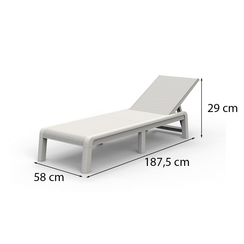 A Keter Mallorca műanyag napozóágy 4 fokozatban állítható háttámlájával, szövet hatású szellőző fekvőfelületével és stabil, időjárásálló anyagával olyan kényelmet kínál, amit élvezet használni. Legyen szó teraszról, erkélyről, kert végéből kialakított kis pihenőhelyről vagy a medenceparti relaxról a Mallorca műanyag napozóágy kényelmes és stílusos pihenést kínál.