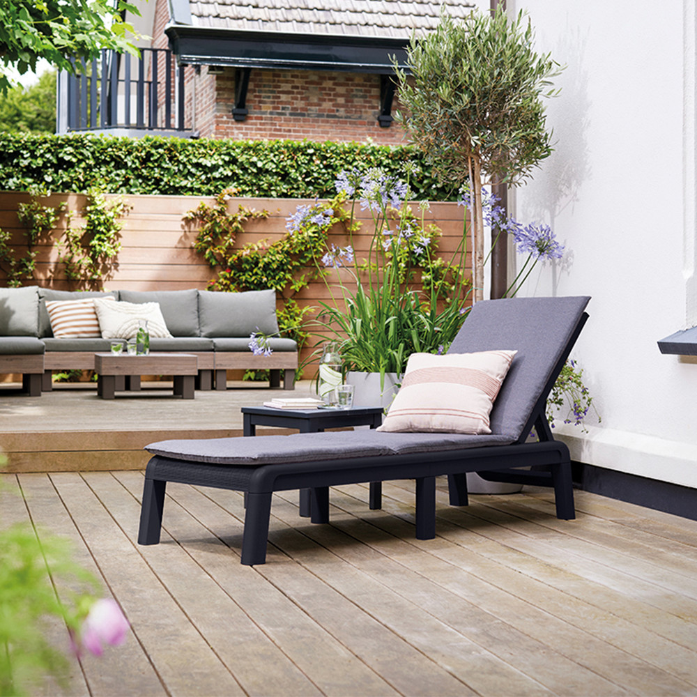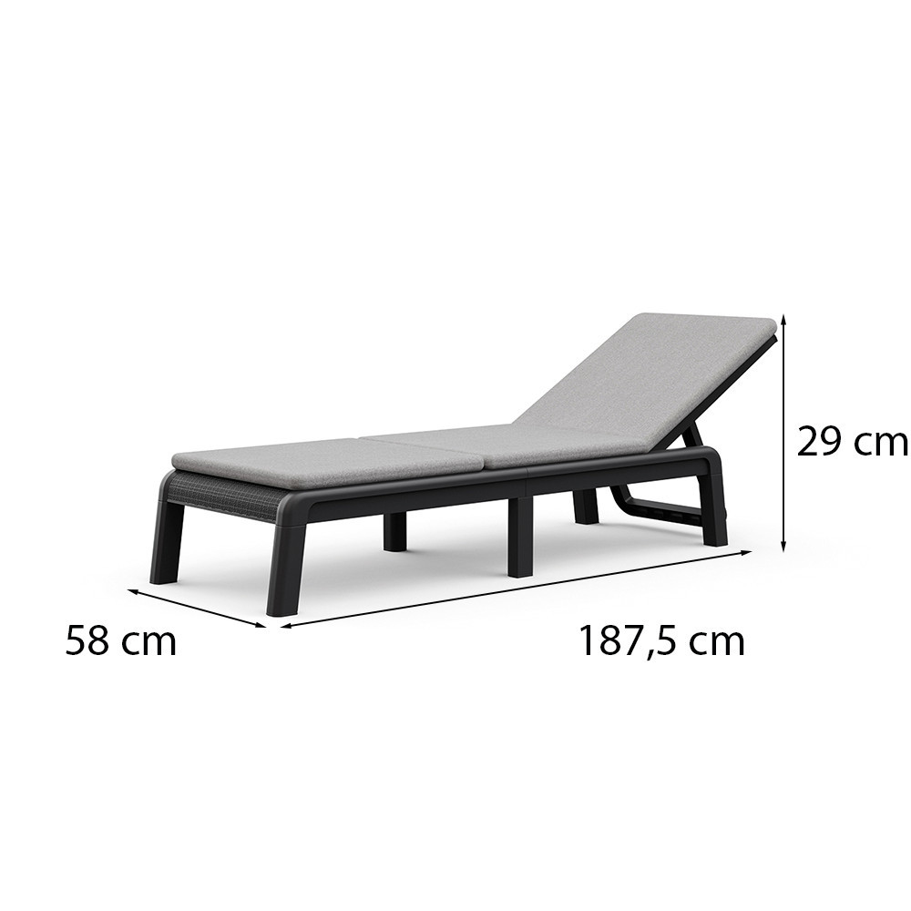 Mallorca műanyag napozóágy grafit szín – világosszürke párnával