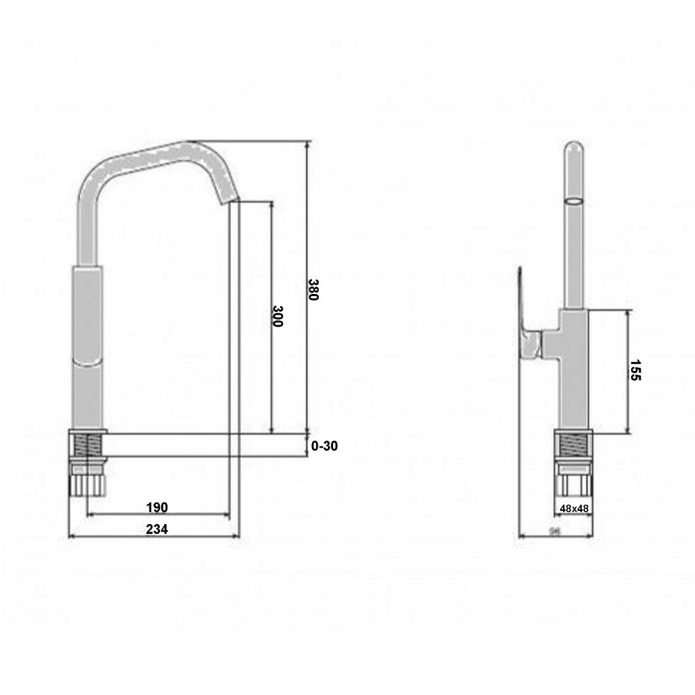 A modell sárgaréz, és 35 mm-es kerámiafejjel rendelkezik. A kifolyócső hossza 19,5 cm, magassága az alaptól 30 cm.