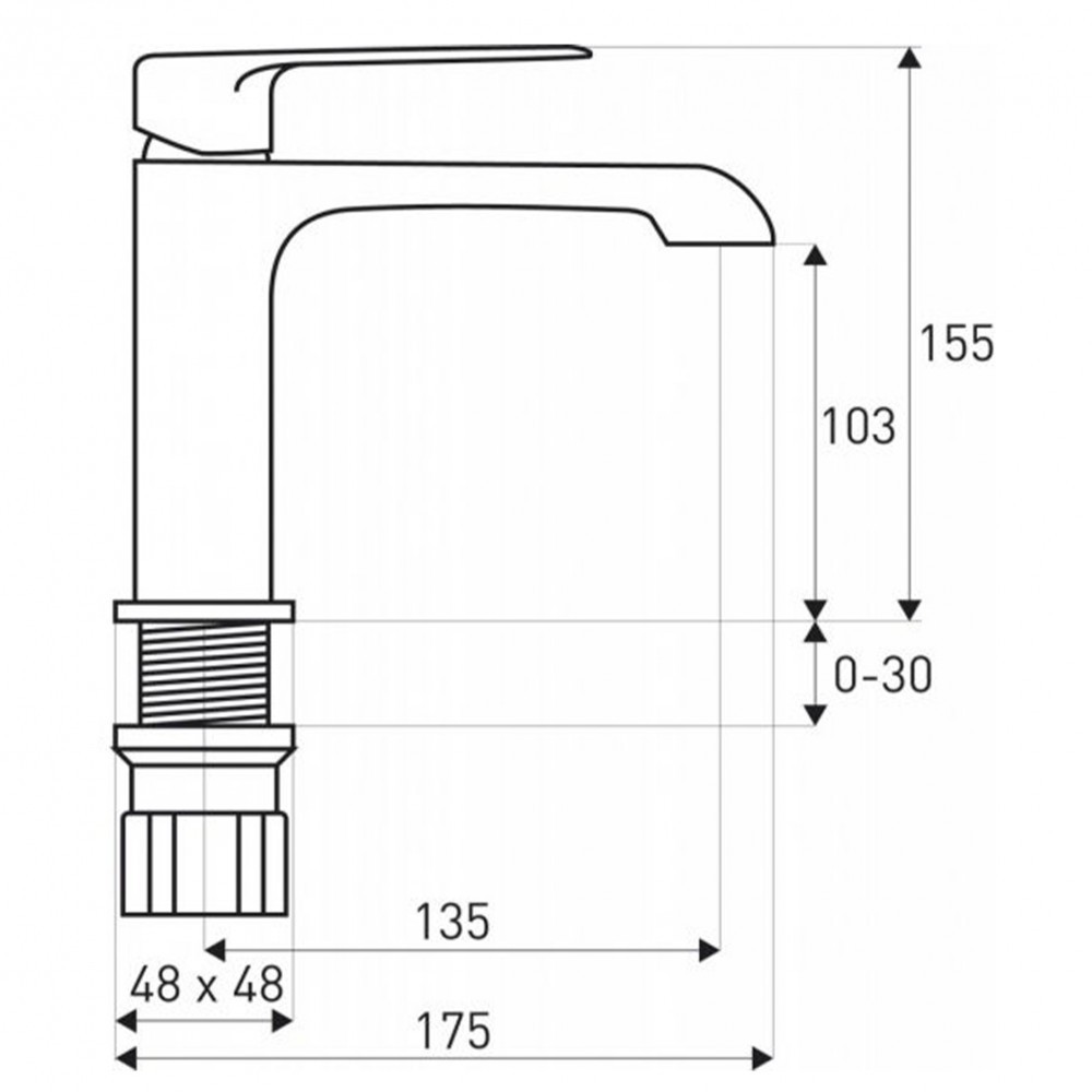 A modell sárgaréz, és 25 mm-es kerámiafejjel rendelkezik. A kifolyócső hossza 14 cm, magassága az alaptól 10,5 cm.