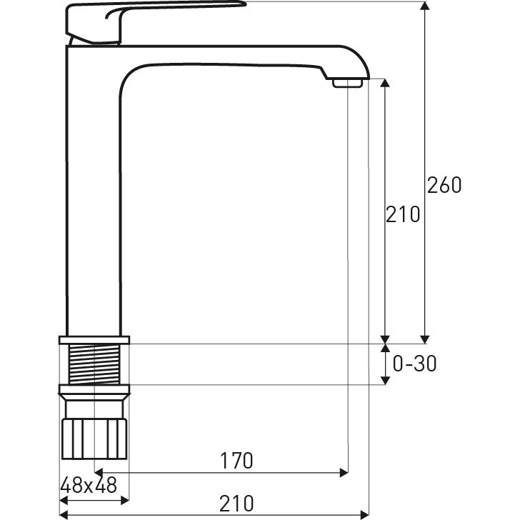 A modell sárgaréz, és 25 mm-es kerámiafejjel rendelkezik. A kifolyócső hossza 17 cm, magassága az alaptól 21 cm.