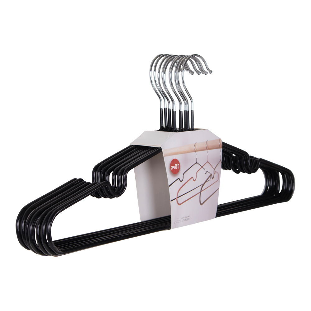 Massa fém vállfa – fekete, 10 db-os szett | Rendszerezés stílusosan, minimál fémes eleganciával Egyszerűség, ami rendet teremt A Massa fekete fém vállfa szett ideális választás mindazoknak, akik átlátható, egységes és esztétikus ruhatárolásra vágynak. A 10 darabos készlet letisztult, modern megjelenésű, mégis kimondottan praktikus – vékony kialakítása miatt több vállfa is elfér egy rúdon anélkül, hogy zsúfolt hatást keltene. Strapabíró fém anyag – hosszú távú használatra A porszórt fémbevonat nemcsak látványra stílusos, de rendkívül tartós is. A vállfák nem deformálódnak, nem törnek el, így kabátok, zakók, ingek vagy nehezebb darabok tárolására is alkalmasak. A fém kialakítás karcsú, mégis szilárd tartást biztosít minden ruhadarabnak. Letisztult fekete színvilág A matt fekete bevonat elegáns és sokoldalú – illik minden gardróbszínhez, legyen szó világos skandináv bútorokról vagy sötétebb modern szekrényekről. Egyforma vállfákkal a szekrény egységes, rendezett képet mutat, ami vizuálisan is megkönnyíti a tájékozódást. Ideális választás minden típusú ruhához Az enyhén ívelt forma megőrzi a ruhák eredeti vonalát, miközben megakadályozza a vállnál való elnyúlást. Akasztós kialakítása kompatibilis a legtöbb szekrényrúddal. Könnyű, mégis stabil szerkezete miatt utazáshoz, vendégszobába vagy szezonális válogatásokhoz is kiváló. Kiknek ajánljuk? Azoknak, akik rendezett és egységes gardróbra vágynak Férfiaknak és nőknek egyaránt – uniszex, univerzális dizájn Irodai használatra, bemutatóterembe vagy butikokba Olyan háztartásokba, ahol a minőség és letisztultság egyszerre fontos A részletekben rejlik a harmónia – a Massa fekete fém vállfa szett segít, hogy ruhatárad ne csak praktikus, de szép is legyen.