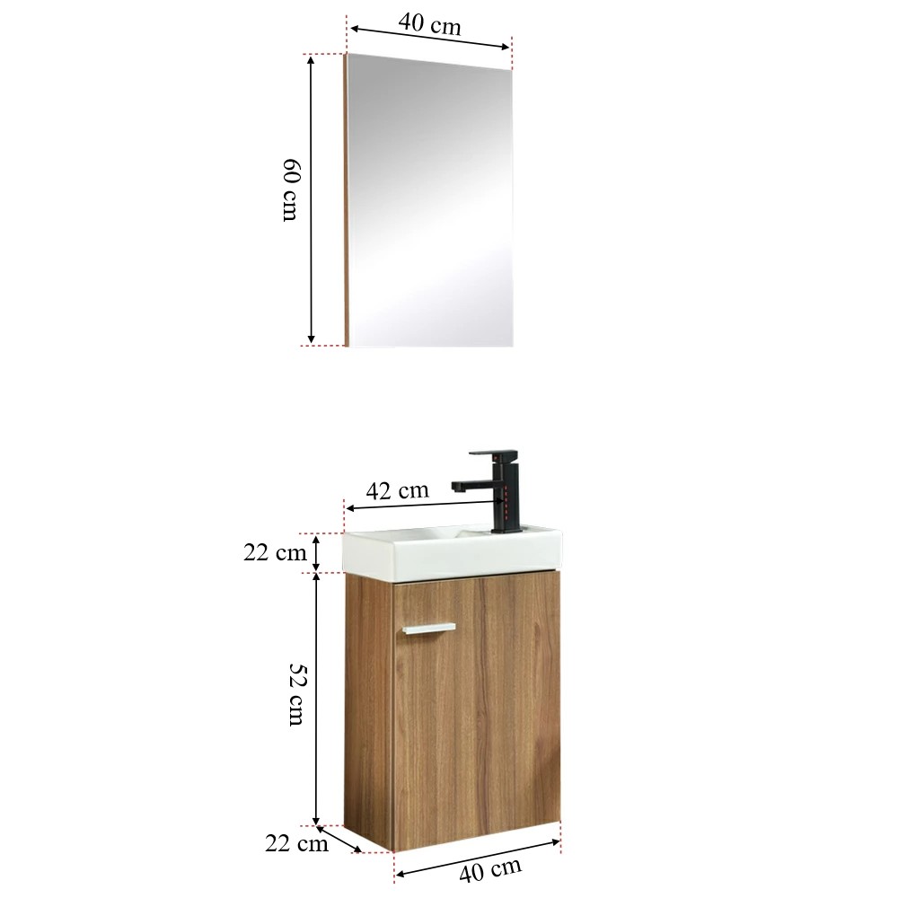 A Melanie komplett fürdőszoba bútor minden szempontból tökéletes választás kisebb és nagyon fürdőszobákba is. Letisztult és kifinomult formái tökéletes megjelenést kölcsönöz a fürdőszobának. 15 mm-es MDF lapból készült. Fogantyúi aluminiumból lettek előállítva.