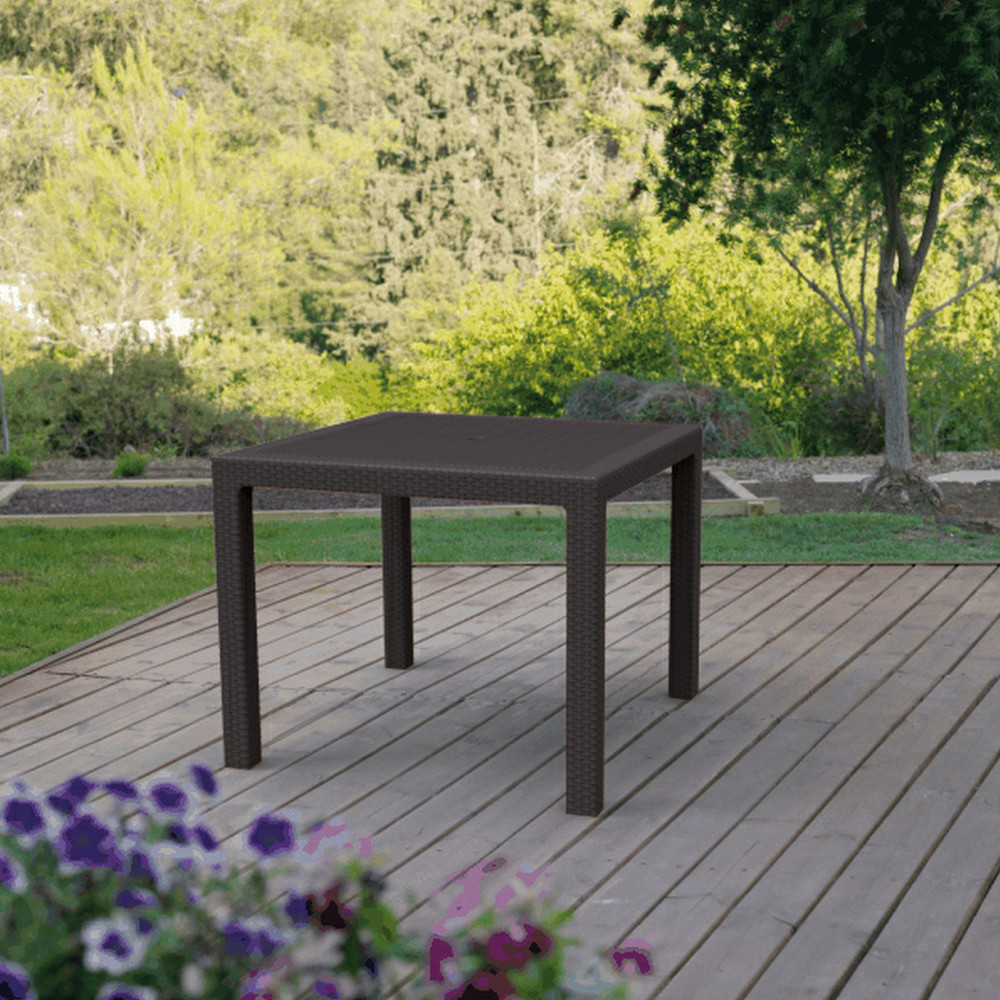 Strapabíró anyaga: UV sugárzásnak és az időjárás viszontagságainak ellenálló műanyagból készült. Az asztal ideálisan beleillik minden ház körüli térbe, ahol ideális helyet teremt a szabad levegőn való pihenéshez. Rattan fonat inspirált felülete a termék esztétikai előnyei közé sorolható.