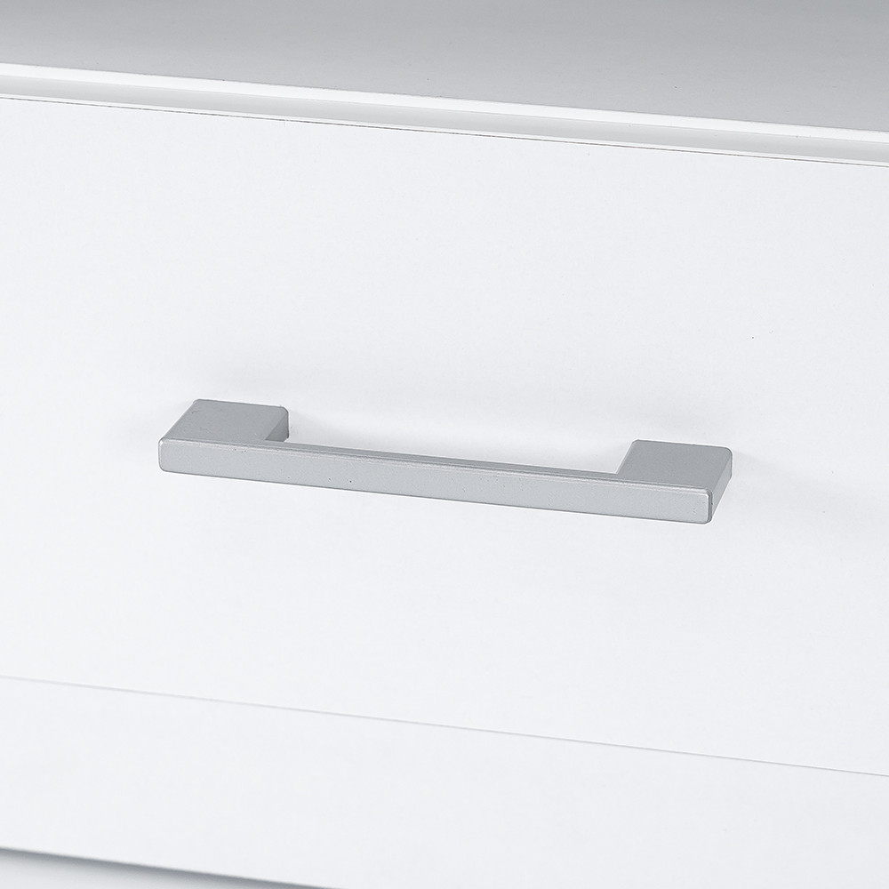 A fehér korpusz és a fehér front tiszta, friss megjelenést kölcsönöz, míg a matt króm hatású műanyag fogantyú modern megjelenést biztosít. A szekrény minimalista dizánja ideális választás lehet, ha a letisztult vonalakat részesíted előnyben.