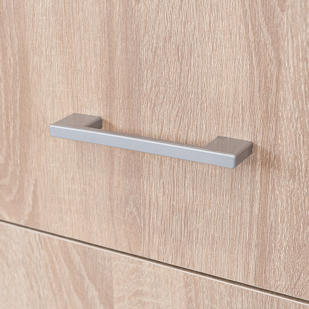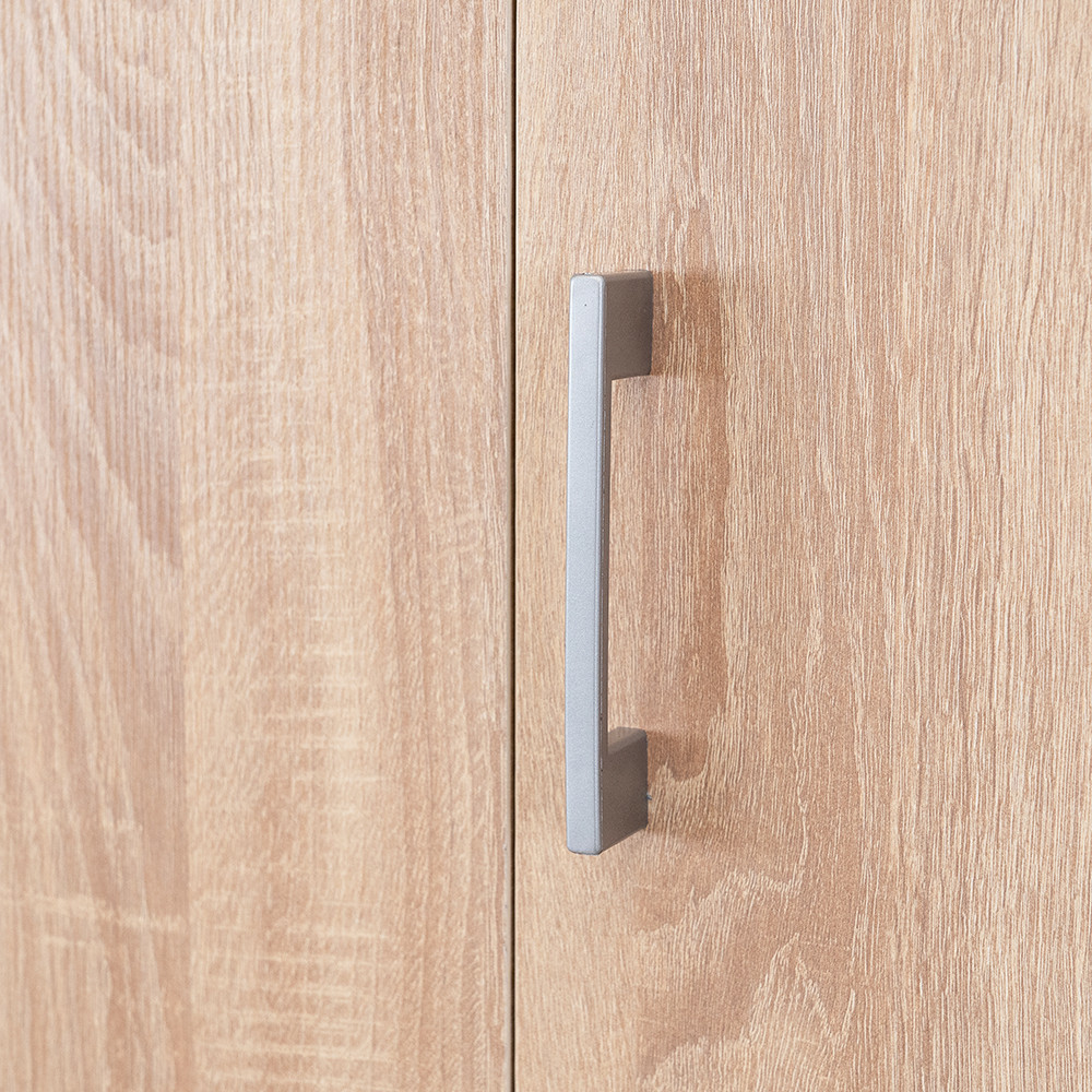A matt króm hatású műanyag fogantyúk modern megjelenést kölcsönöznek, míg a két szárnyú nyílóajtó és a polcrendszerhez kialakított ajtó révén az egész szekrény belseje könnyen áttekinthető, így minden ruhadarab és tárgy könnyedén elérhető. A 6 polc és a két görgős fiók bőséges tárolóhelyet biztosít legyen szó ágyneműről, szezonon kívüli ruházatról vagy fehérneműkről.