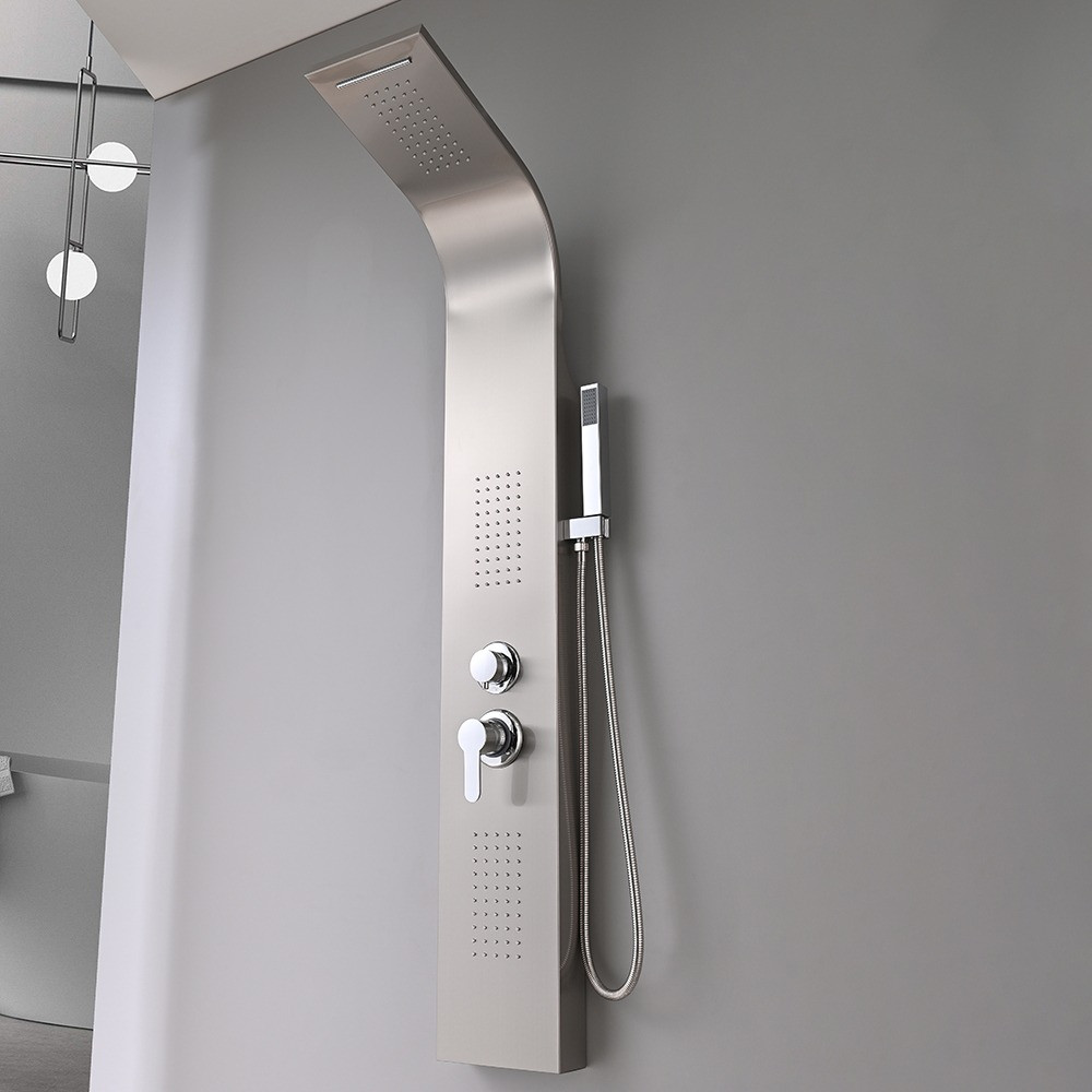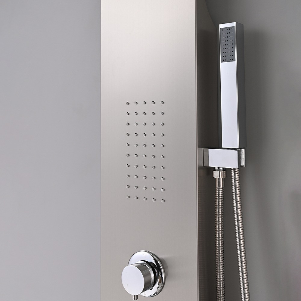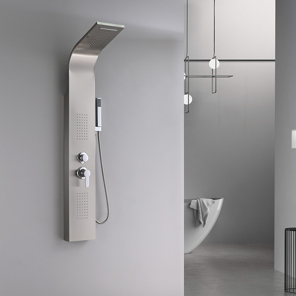 A fő vonzerő a zuhanypanelen található felső zuhany, amely egy vízesés funkciót is magában foglal. Ez a kombináció lehetővé teszi, hogy az ember úgy érezze, mintha egy frissítő vízesés alatt állna, miközben a langyos vízcseppek lágyan simulnak a bőrre, ellazítva az izmokat és megnyugtatva az elmét. A hidromasszázs élményt tovább fokozzák a két hátsó zuhanyfúvóka. Ezek az állítható fúvókák a hát középső részére irányítják a vízsugarat, masszírozza és ellazítja az izmokat, csökkentve a fáradtságot és a stresszt. A hátsó zuhanyfúvókák használata különösen jótékony hatású lehet hosszú nap után vagy intenzív fizikai aktivitás után.