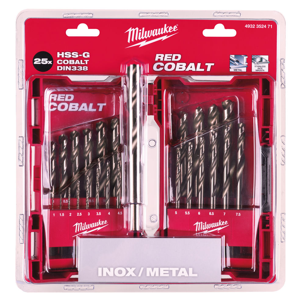 Milwaukee Red Cobalt – HSS-G Co fémfúró – DIN 338 Készlet (25 darab)