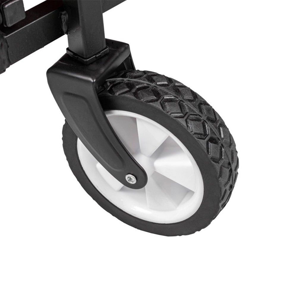 A tágas szállítókocsi acélvázzal rendelkezik a szilárd szerkezet érdekében. Az 5″ átmérőjű kerekek tökéletesek a kerti kocsi mozgatásához különböző felületeken. A 360°-os kormánykerekeknek köszönhetően a kocsi kormányzása problémamentes.