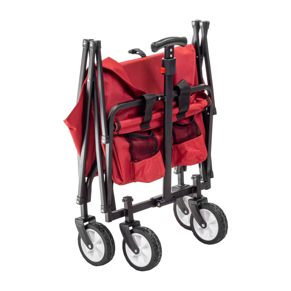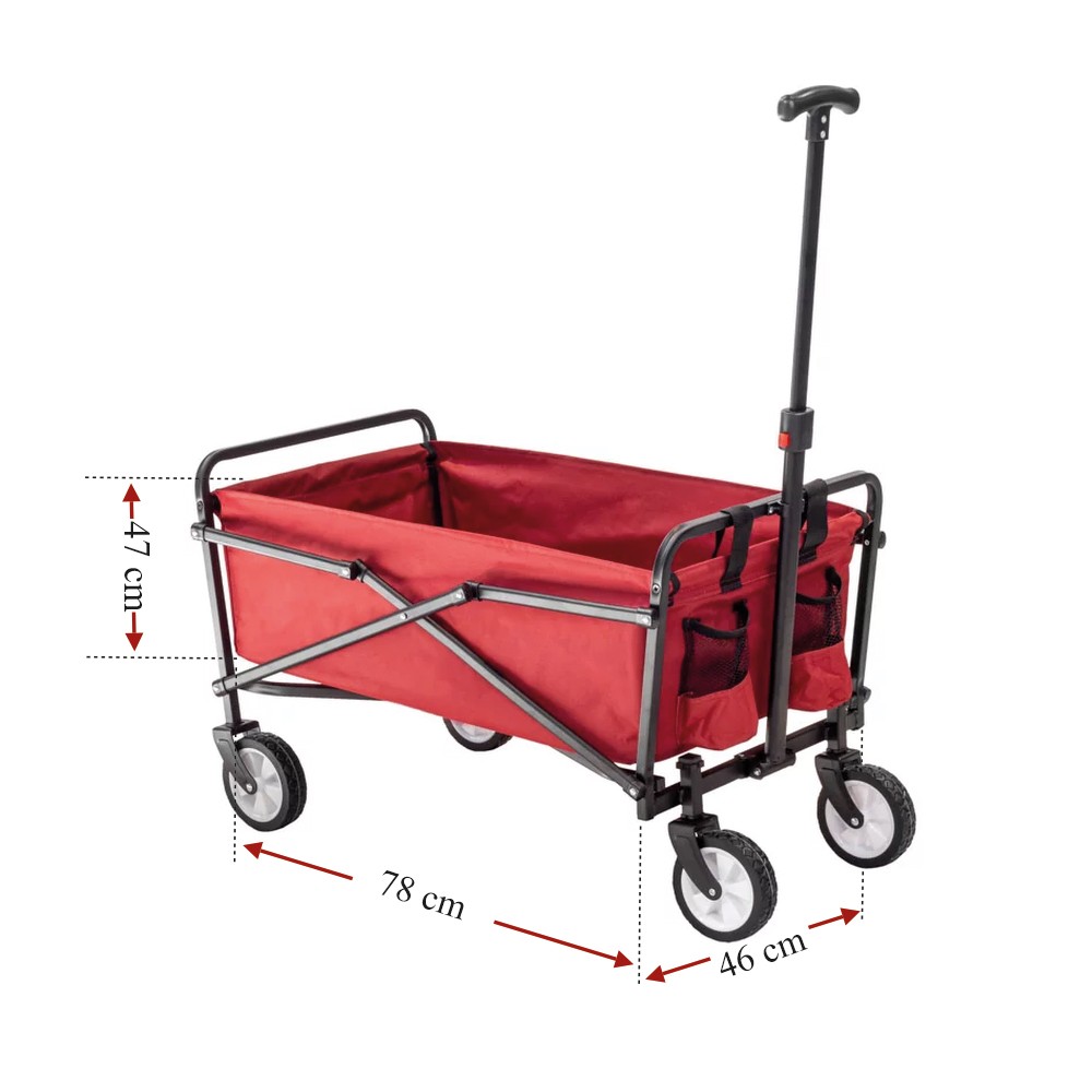 Az összecsukható szállítókocsi segítségére lehet akár 60 kg-os rakomány szállításánál. A kerti kocsi fogantyúja állítható , ami lehetővé teszi a hossz egyéni igény szerinti beállítását. A kocsi acélvázának belsejében található, könnyen eltávolítható anyag könnyen tisztítható. Az oldalzsebek további előnyt jelentenek. A szállítókocsi összecsukható, így könnyen tárolható.