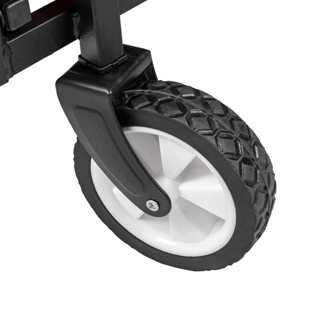 A tágas szállítókocsi acélvázzal rendelkezik a szilárd szerkezet érdekében. Az 5″ átmérőjű kerekek tökéletesek a kerti kocsi mozgatásához különböző felületeken. A 360°-os kormánykerekeknek köszönhetően a kocsi kormányzása problémamentes.